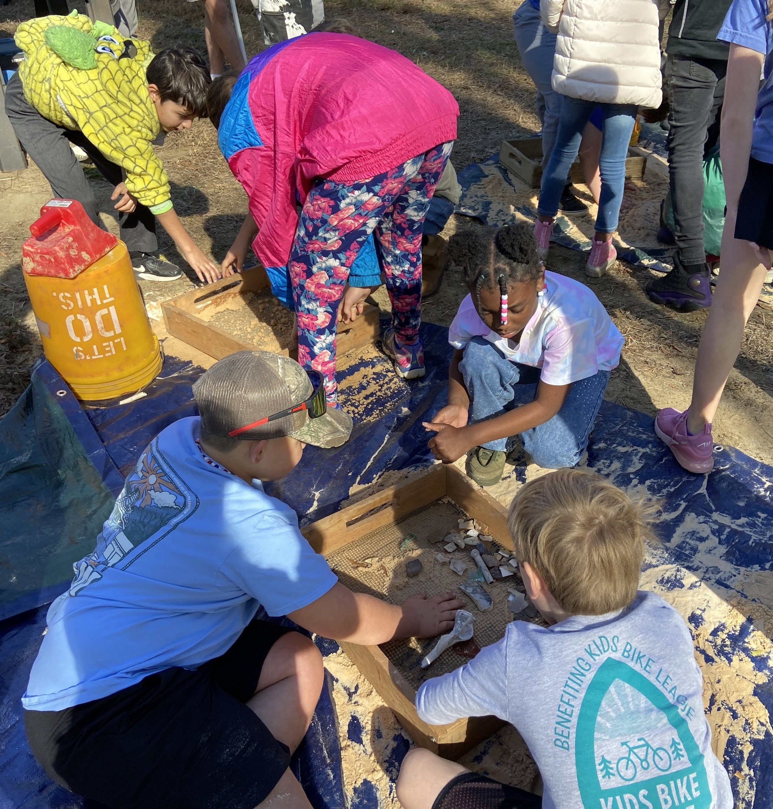 Archeology Day was fun and educational. Fortunately, it was the November Kids Bike League ride day and all the kids and coaches came and took the tour -- which included a video and short talks by different staff members on different aspects of their work. Hands on dirt screening was offered to the kids, and they loved it.